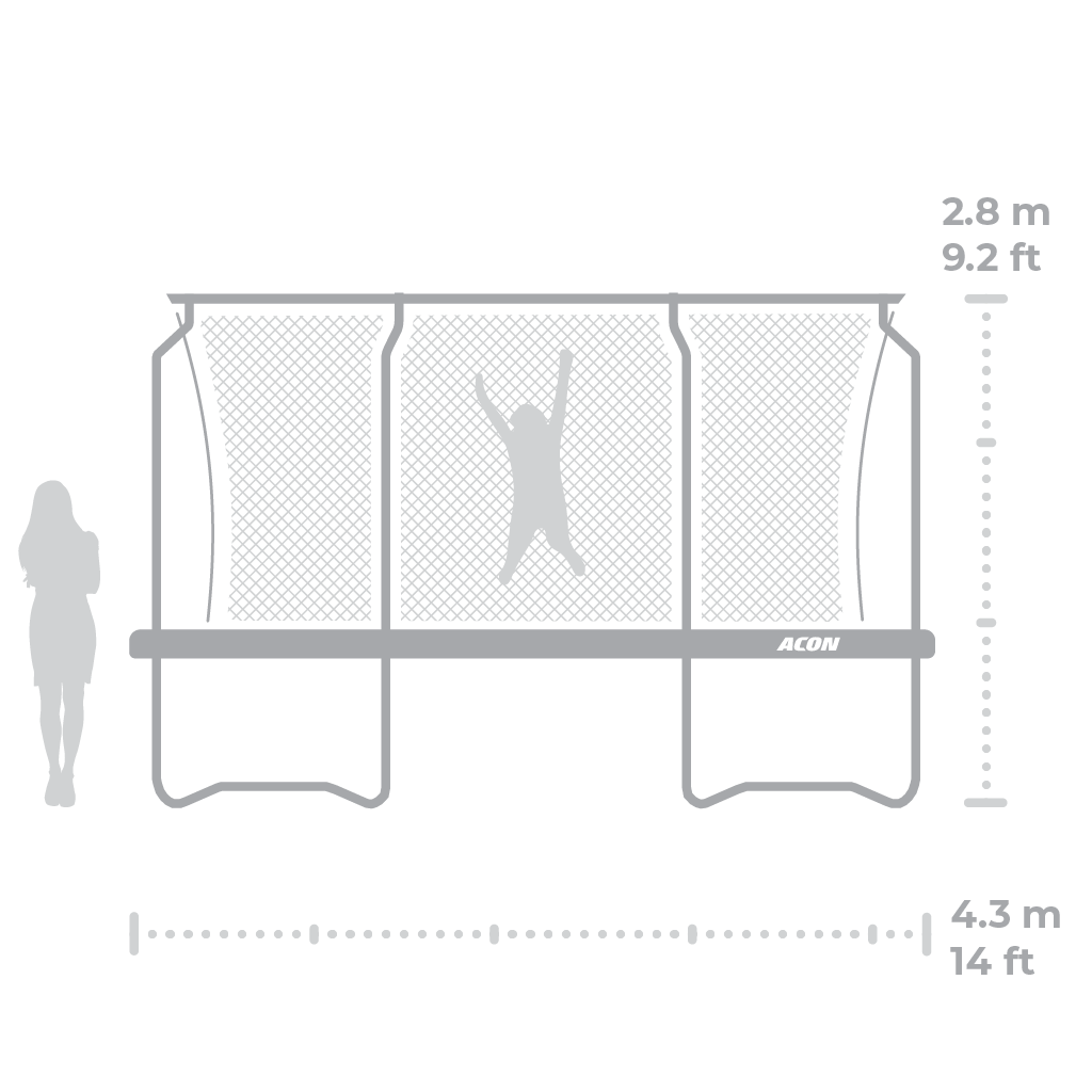 Like every Acon, this 14-foot/4.3m model is created with Synergy Design which delivers you the best bounce. This perfect combination between the design and engineering of the springs, mat and frame amplifies every bounce. As part of the Air lineup, it features the Air Series springs for more air with every jump. All engineered for a quiet, more peaceful experience thanks to the Air Spring design.